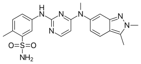 Dasatinib is a tyrosine kinase inhibitor used for the treatment of Philadelphia chromosome-positive acute lymphoblastic leukemia or chronic myeloid leukemia.